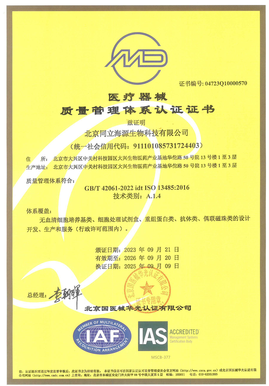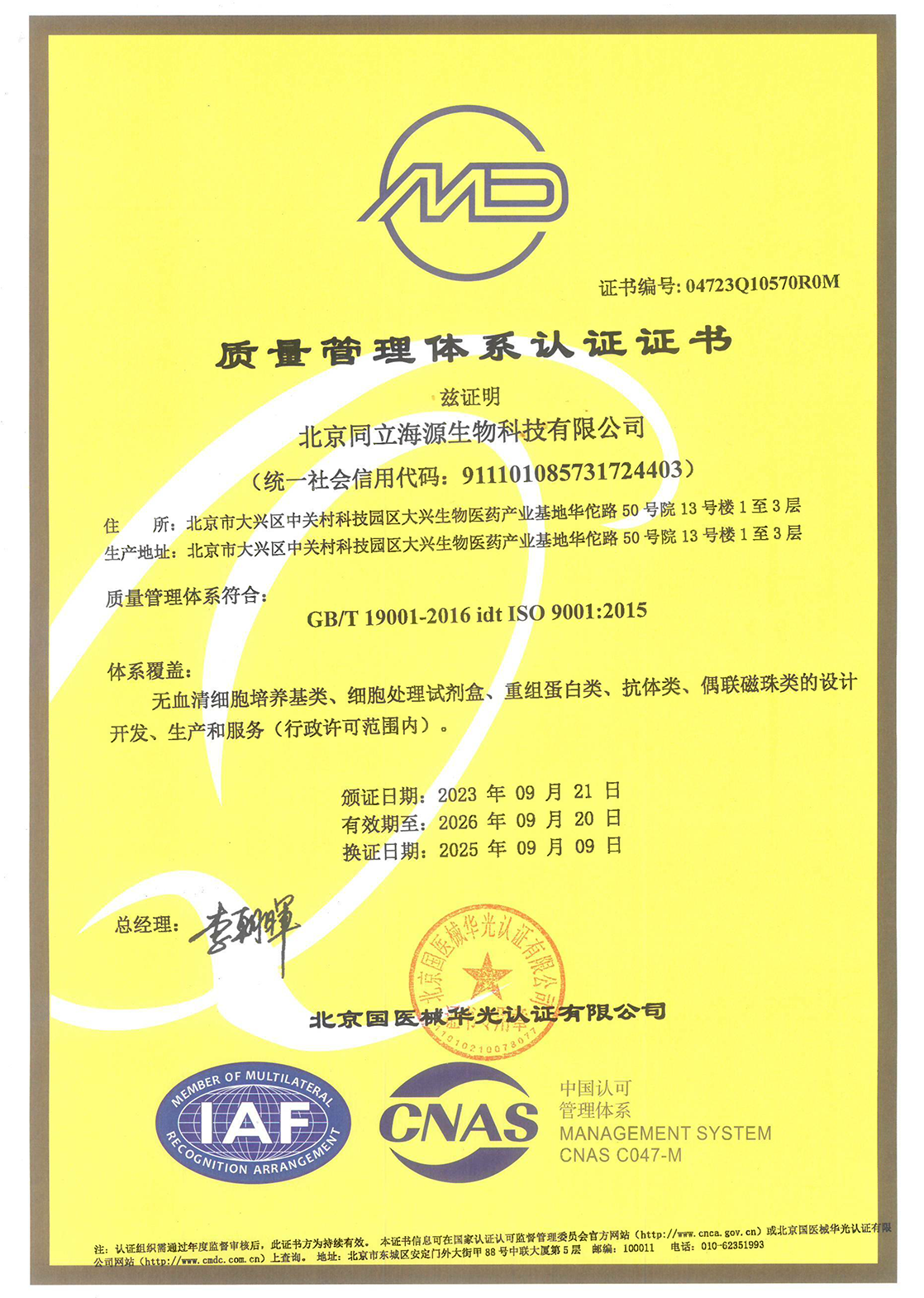 北京同立海源生物科技有限公司,专注细胞和基因治疗(CGT)上游GMP级原料试剂研发及生产,为CGT用户提供产品与服务的整体解决方案。产品涉及细胞分选磁珠试剂,真核/原核重组蛋白、无血清培养基、细胞培养试剂盒等。
