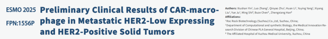题目《Preliminary Clinical Results of CAR-macrophage in Metastatic HER2-Low Expressingand HER2-Positive Solid Tumors》,最终发表编号(FPN):1556P+