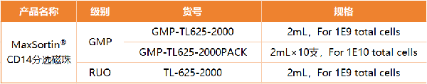CAR-M疗法的核心在于获得高纯度、高活性的巨噬细胞前体,再通过基因工程改造赋予其肿瘤特异性识别与杀伤能力。RR-M01作为第三代CAR-M疗法,其制造工艺要求“稳健且可重复”,需确保最终产品的细胞活力、表型稳定性、CAR阳性率及细胞杀伤等关键质量属性(CQAs)全面达标。而这一切的起点,首先是高纯度、高活性的CD14+目的细胞的获得,同立海源CD14细胞分选磁珠(MaxSortin® CD14分选磁珠,Cat. No. GMP-TL625-2000)以精准分选技术,从源头筑牢质量根基,完美支撑RR-M01的临床转化。而此次对RR-M01项目的成功助力,不仅是对我司CD14分选磁珠产品性能的权威验证,更彰显了我们助力细胞治疗产业升级的实力与决心。