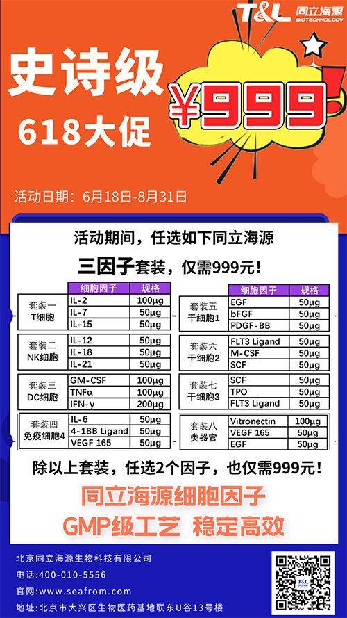 3、除促销套装外,购买同立海源任意2个细胞因子(最小包装规格)也仅需999元。